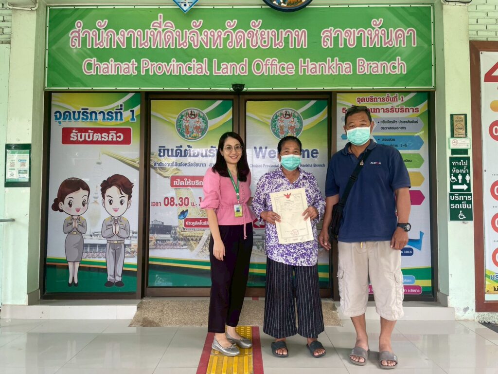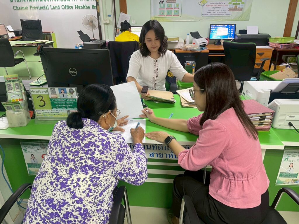 เมื่อวันที่ 10 ตุลาคม 2568 นางทิพวรรณ์ เกตุหนู หัวหน้าสำนักงานกองทุนฟื้นฟูและพัฒนาเกษตรกร สาขาจังหวัดชัยนาท มอบหมายให้ นางสาวเยาวนาถ ทับทิมถาวร พนักงานทั่วไป ดำเนินการโอนกรรมสิทธิ์ที่ดินคืนให้แก่เกษตรกรสมาชิกราย นางอำนาย ไชยสุวรรณ์ หลักประกัน จำนวน 4 แปลง หลังจากที่ได้ชำระหนี้คืน กฟก. เสร็จสิ้นแล้ว ณ สำนักงานที่ดินจังหวัดชัยนาท สาขาหันคา